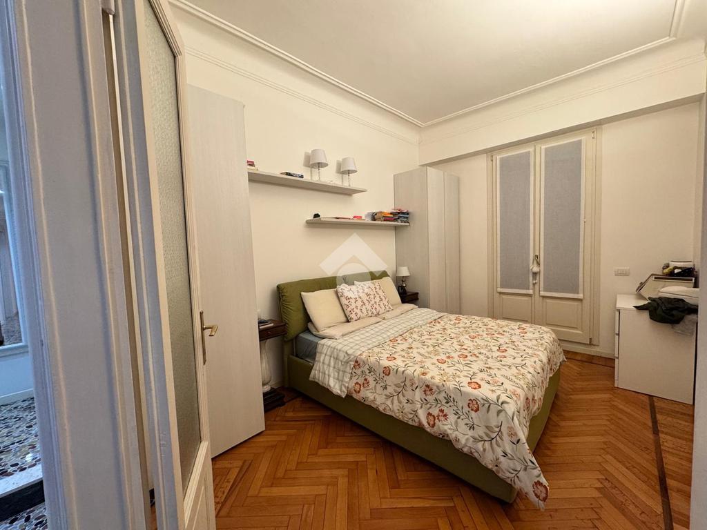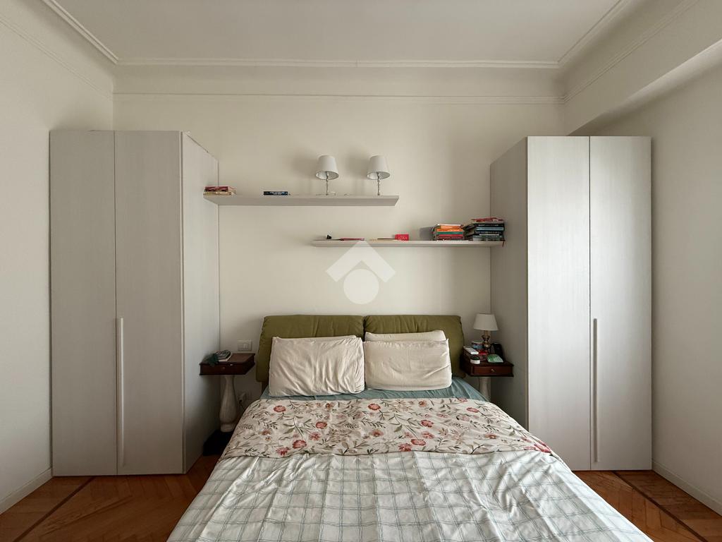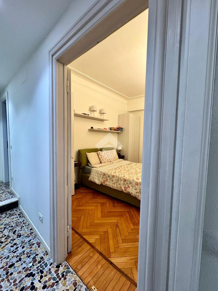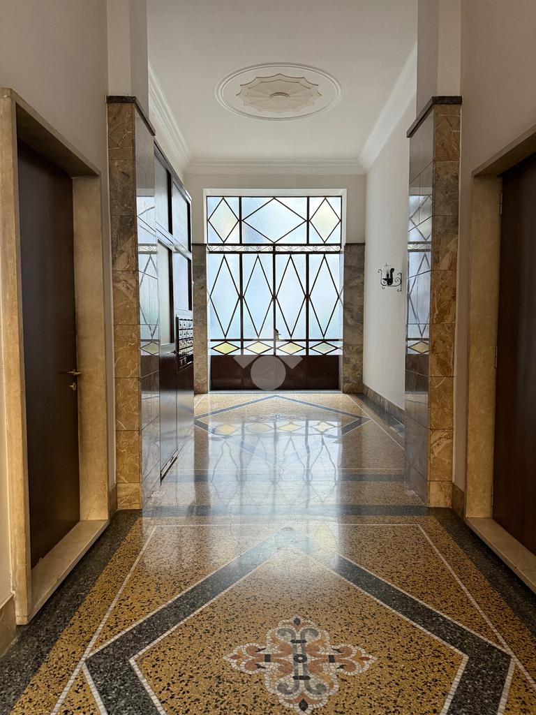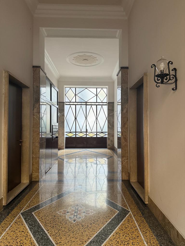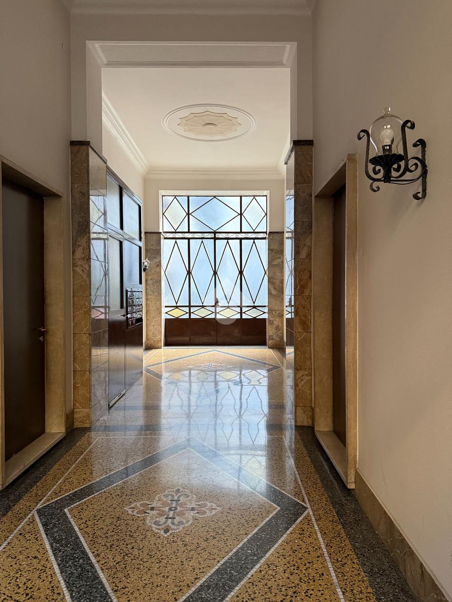 La zona notte è composta da due camere matrimoniali, una delle quali affacciata direttamente sul terrazzo, e da due bagni finestrati, entrambi ristrutturati con cura e materiali contemporanei. Il fascino dell’epoca è perfettamente conservato nella bellissima pavimentazione originale e nei dettagli architettonici che impreziosiscono ogni ambiente. L’appartamento gode di una luminosità naturale straordinaria e di una silenziosità inaspettata, che ne esaltano ulteriormente il comfort abitativo.