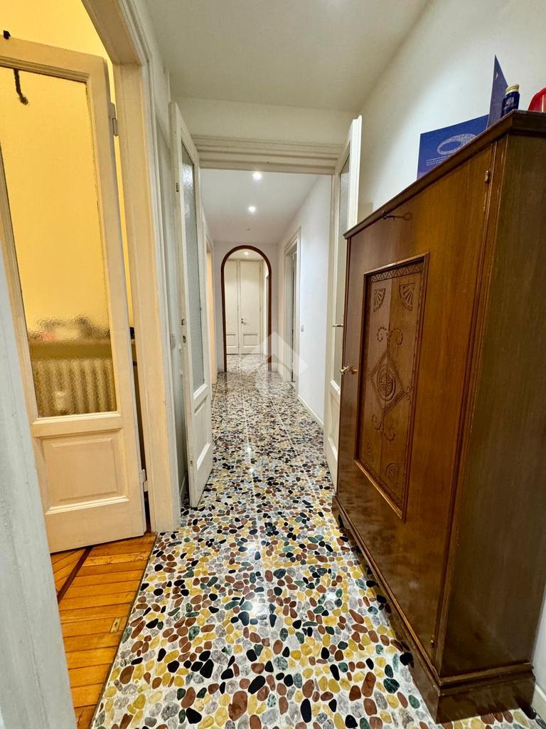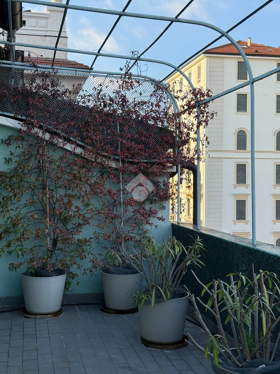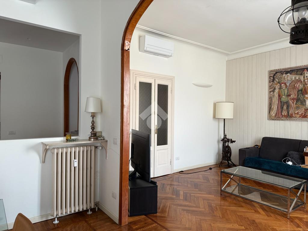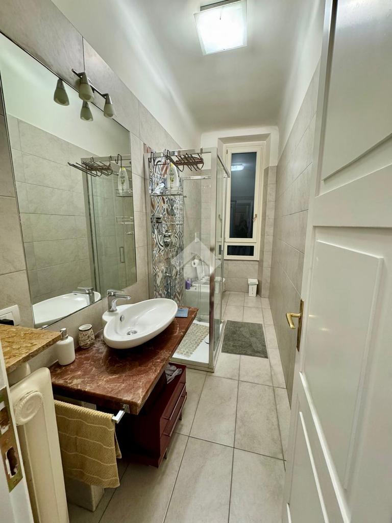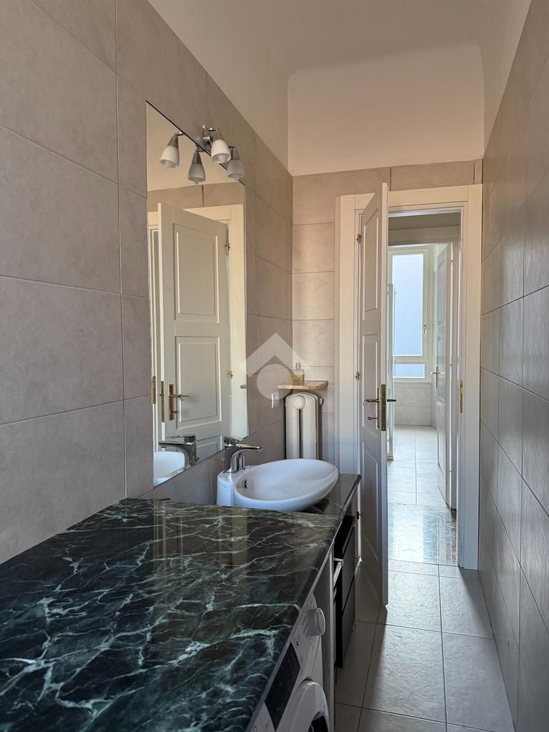 La zona notte è composta da due camere matrimoniali, una delle quali affacciata direttamente sul terrazzo, e da due bagni finestrati, entrambi ristrutturati con cura e materiali contemporanei. Il fascino dell’epoca è perfettamente conservato nella bellissima pavimentazione originale e nei dettagli architettonici che impreziosiscono ogni ambiente. L’appartamento gode di una luminosità naturale straordinaria e di una silenziosità inaspettata, che ne esaltano ulteriormente il comfort abitativo.