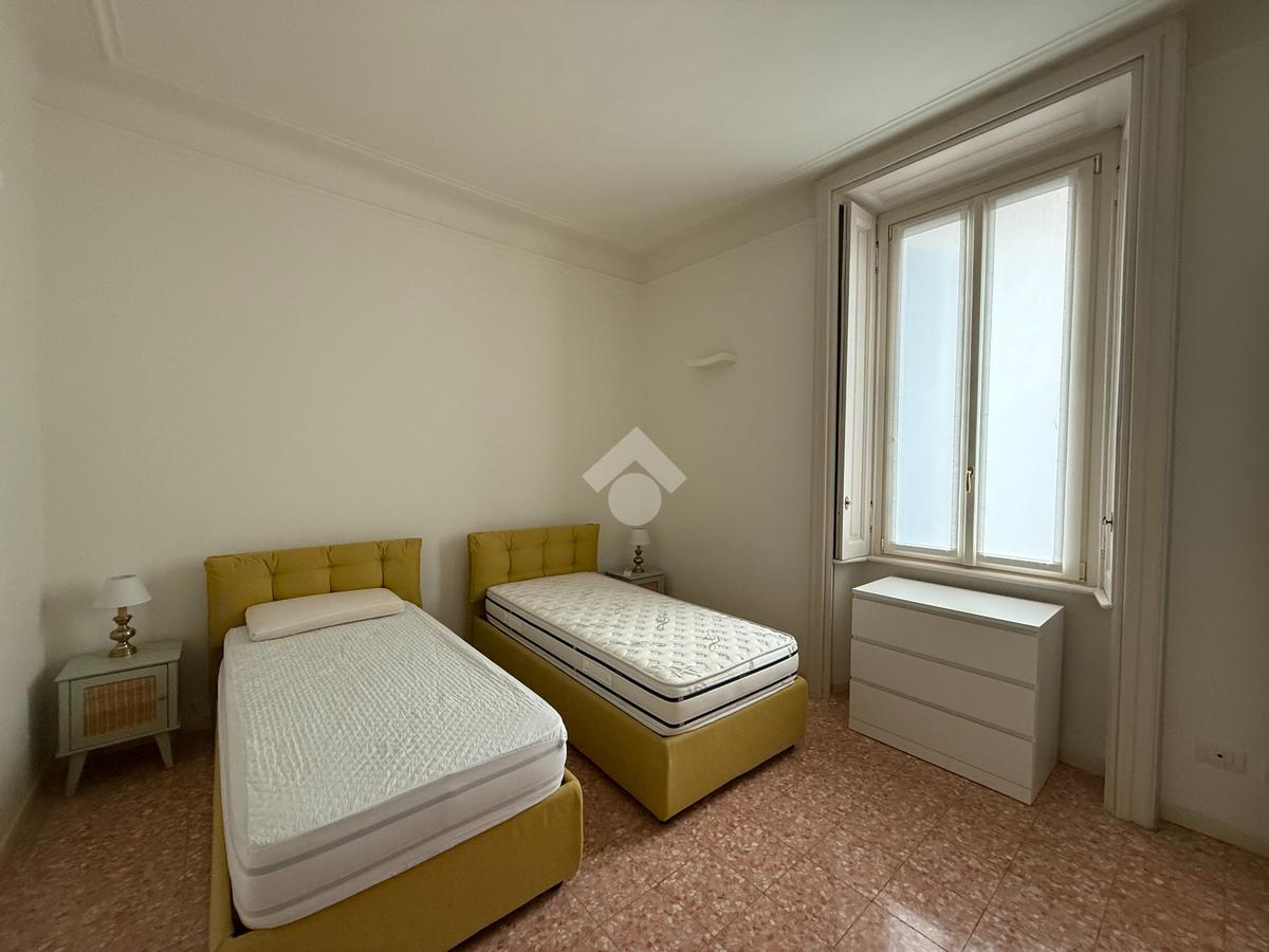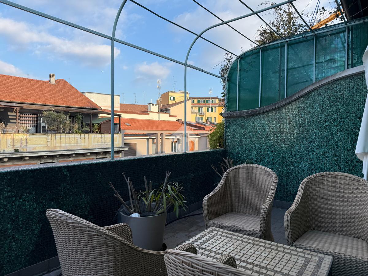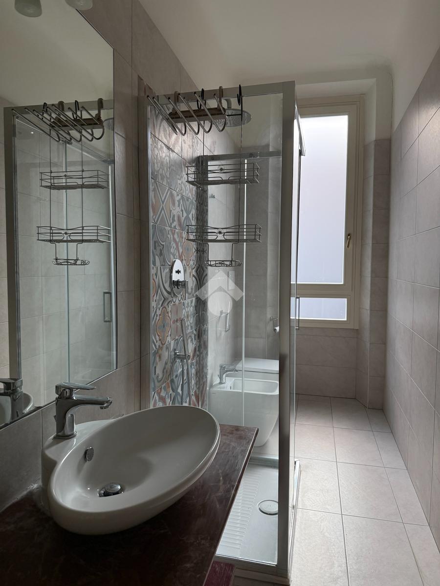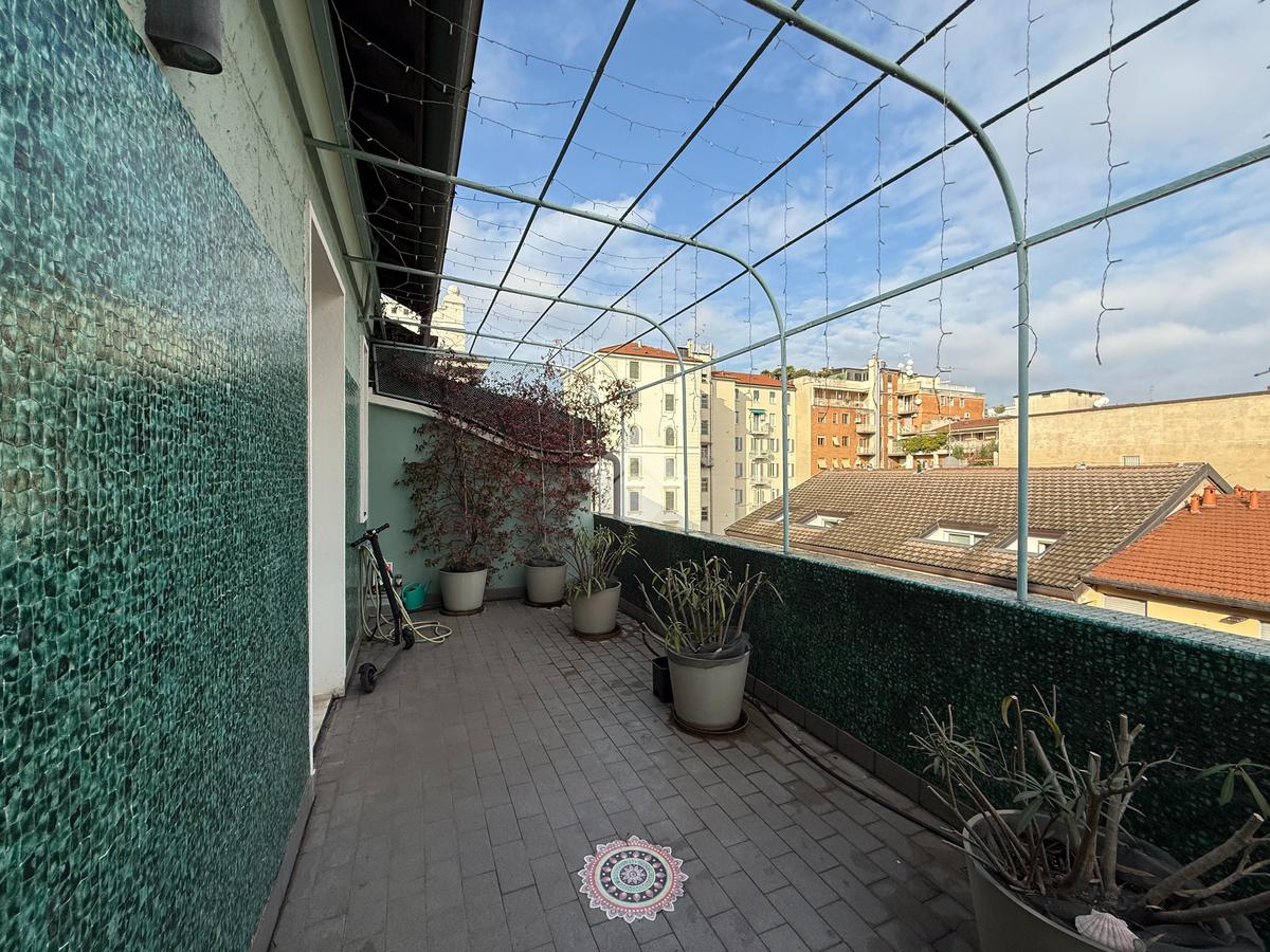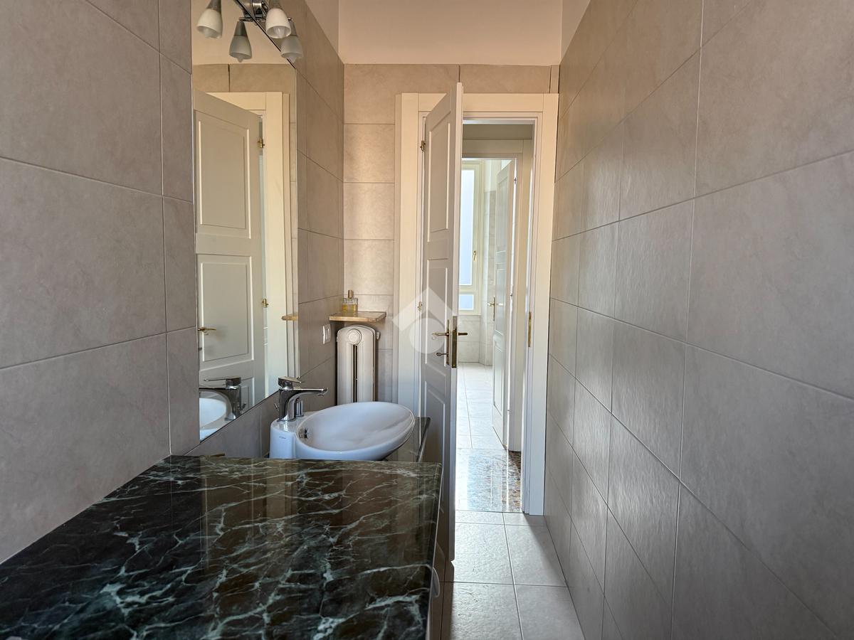 La zona notte è composta da due camere matrimoniali, una delle quali affacciata direttamente sul terrazzo, e da due bagni finestrati, entrambi ristrutturati con cura e materiali contemporanei. Il fascino dell’epoca è perfettamente conservato nella bellissima pavimentazione originale e nei dettagli architettonici che impreziosiscono ogni ambiente. L’appartamento gode di una luminosità naturale straordinaria e di una silenziosità inaspettata, che ne esaltano ulteriormente il comfort abitativo.