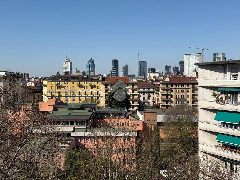 L’immobile, esposto a sud, gode di una splendida vista panoramica sullo skyline di Milano, garantendo luminosità e tranquillità grazie al piano alto.
