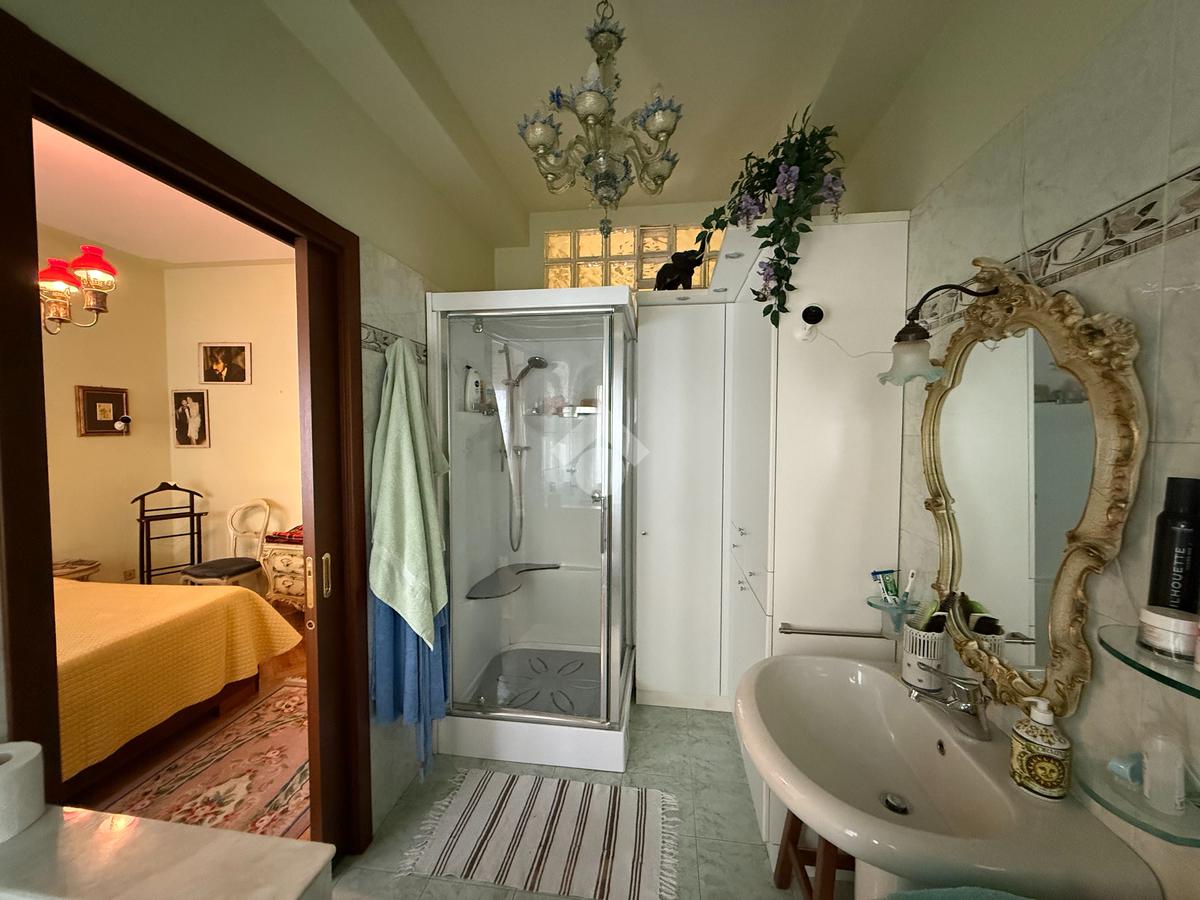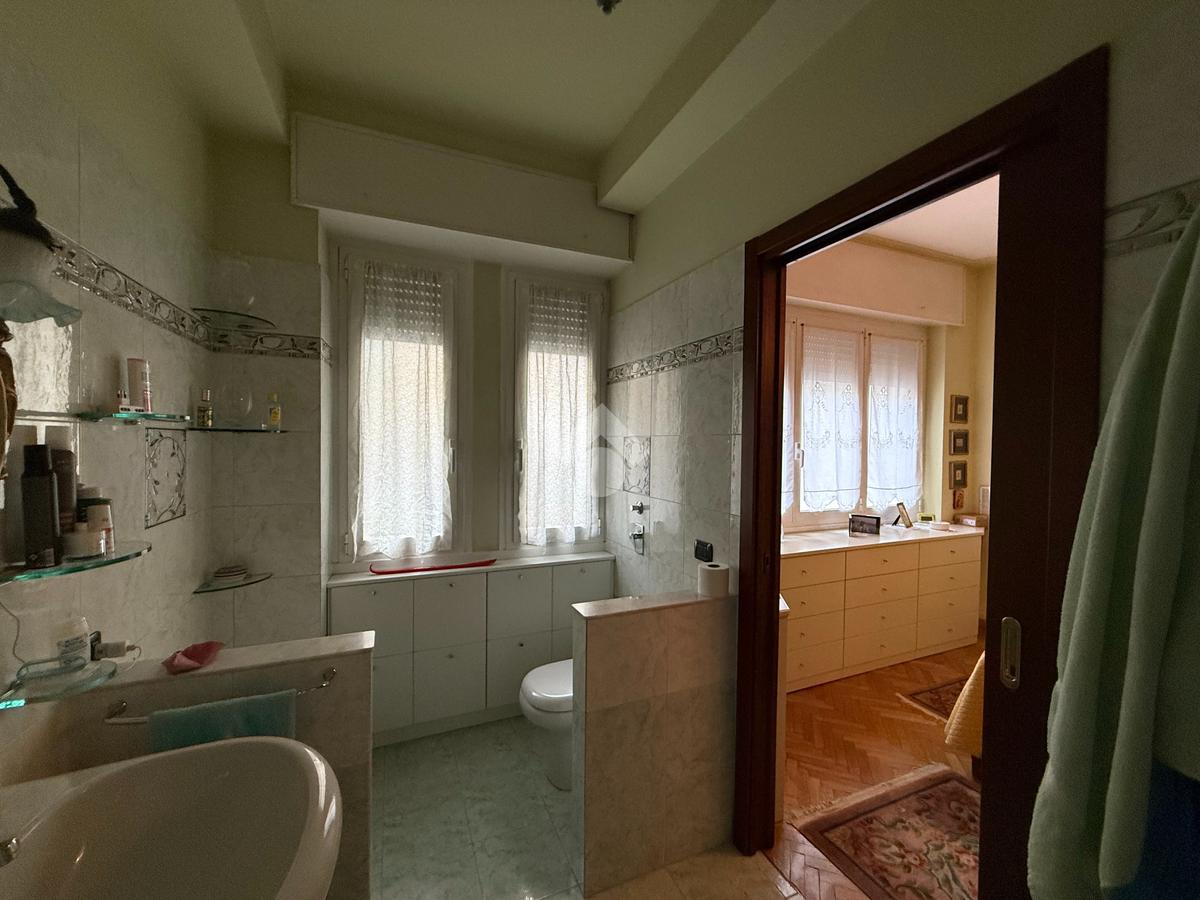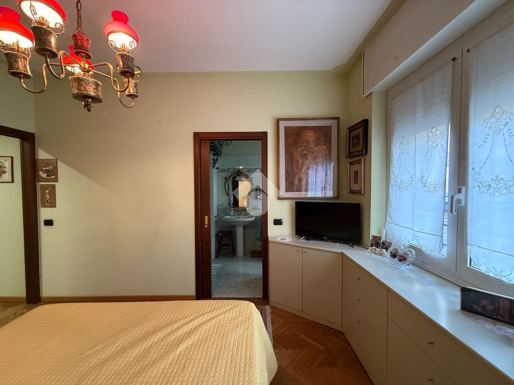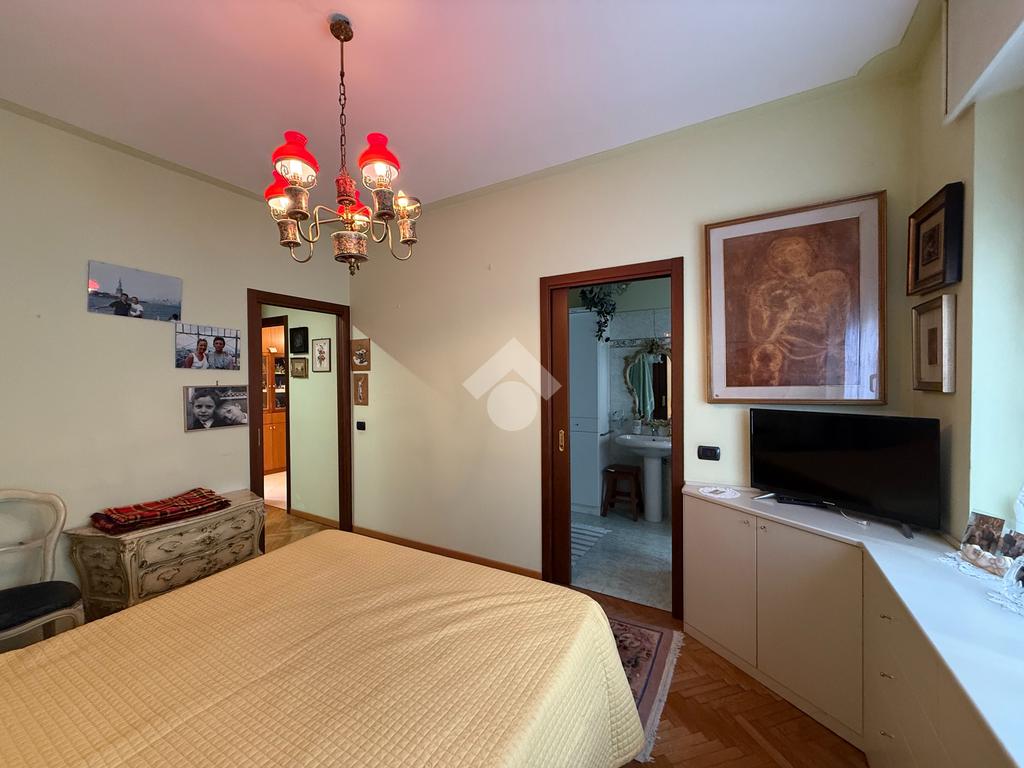 L’appartamento si apre con una distribuzione attentamente studiata: la zona giorno, rivolta a sud-ovest, è ampia e luminosa e si presta a molteplici configurazioni d’arredo, mentre la cucina abitabile separata garantisce comodità per la vita quotidiana e per chi ama cucinare. La zona notte, raccolta e riservata, ospita una camera matrimoniale concepita come vera suite, completa di cabina armadio e bagno en suite finestrato, oltre a una seconda camera da letto ideale come stanza per gli ospiti, studio o camera per i figli, e a un secondo servizio.
