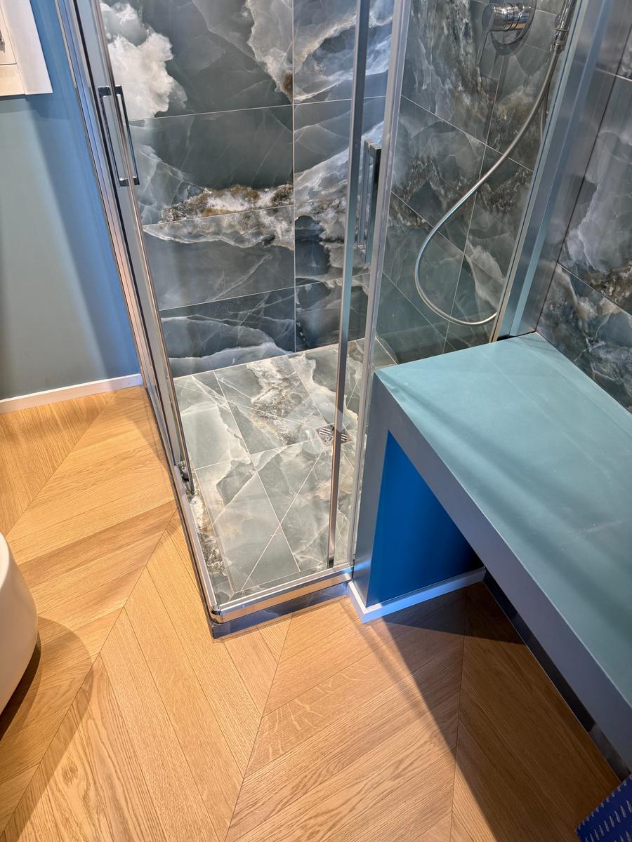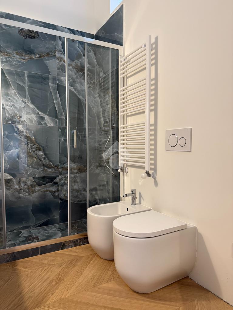 La proprietà è impreziosita da due balconi, cantina e solaio di pertinenza, ed è stata progettata con una cura rara per il dettaglio. Gli interni presentano soluzioni moderne e materiali di assoluta eccellenza: il pavimento è uno straordinario parquet in rovere naturale posato a spina francese, che dona armonia e continuità estetica a tutta la casa. I bagni si caratterizzano per piastrelle su misura in una raffinata tonalità blu petrolio, abbinate a sanitari Hafro, selezionati per garantire un design contemporaneo e una qualità senza compromessi.